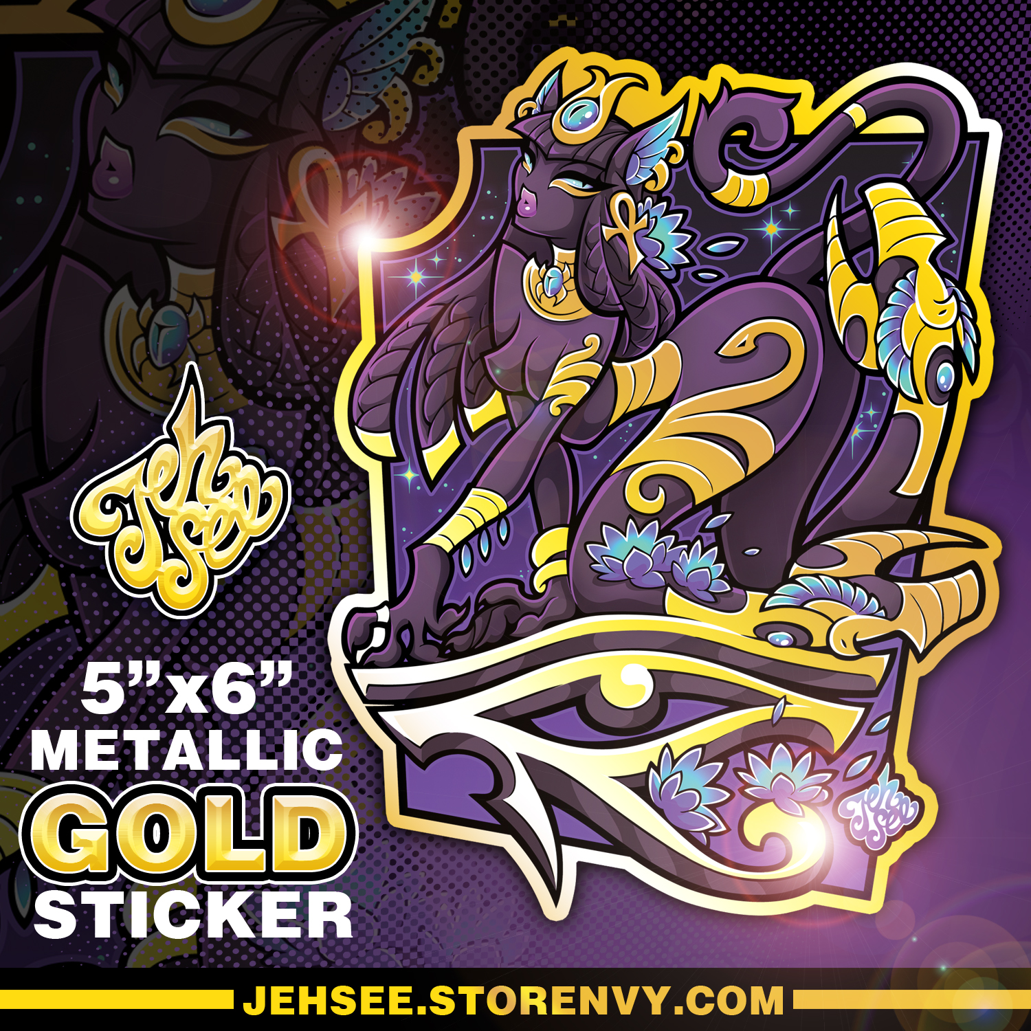 Measuring just under 5x6 inches, this beautiful design comes printed on a reflective gold material and finished off with a gloss laminate.