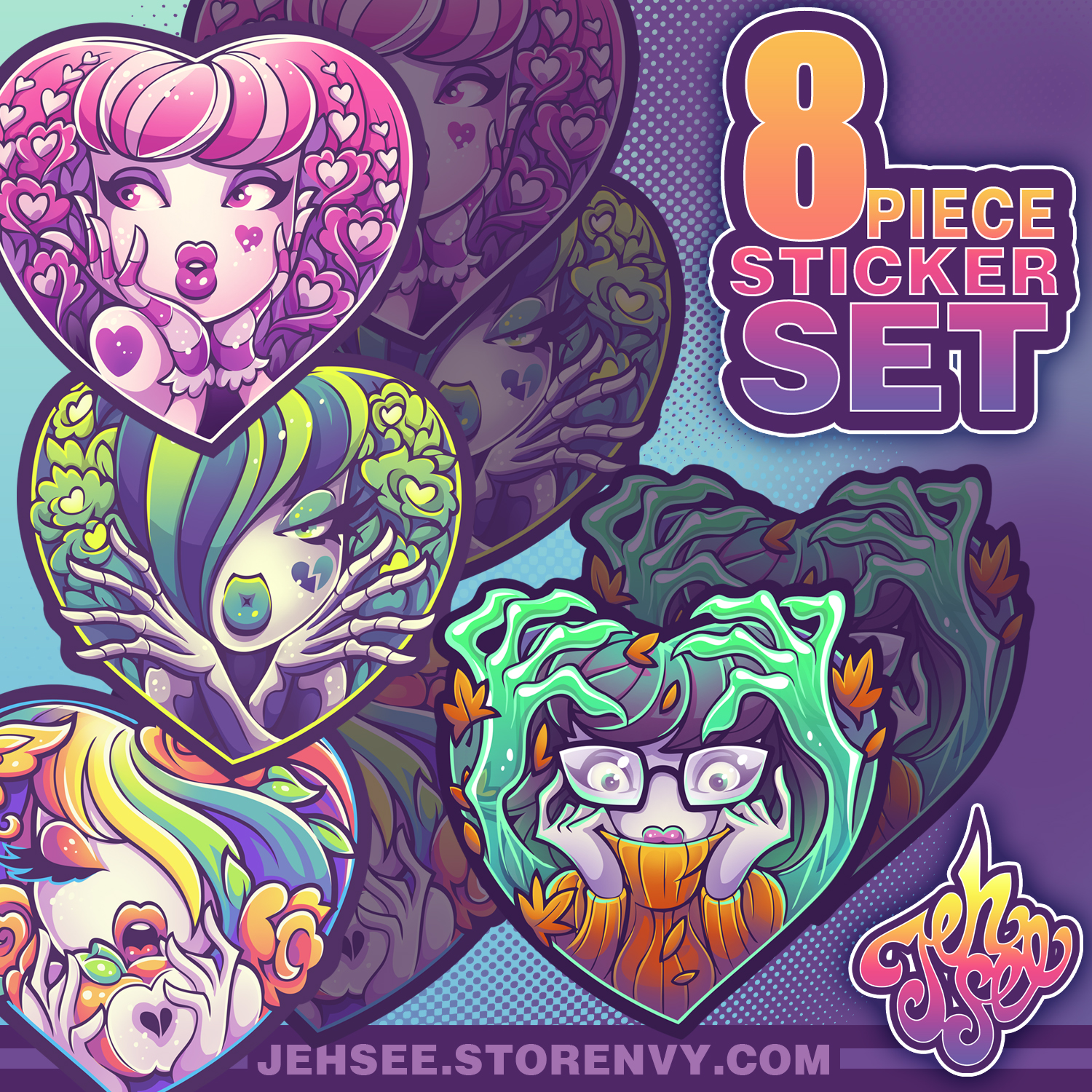 Includes 8 Outdoor-durable die-cut vinyl stickers. 4 designs, 2 copies of each. Each sticker measures approximately 3"x3".